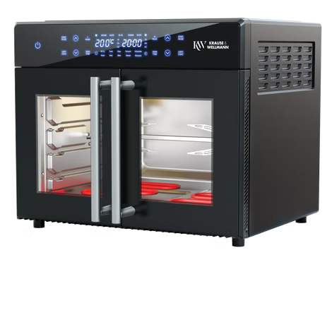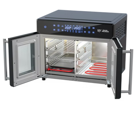 Cook for the whole family without compromise. This 30L dual air fryer features independent cooking zones, letting you prepare two completely different meals simultaneously. The built-in rotisserie function delivers perfectly crisp exteriors and juicy interiors every time, while the aluminium interior ensures heat distributes evenly throughout. Precision digital controls give you complete command over temperature and cooking time, transforming weeknight dinners and entertaining into effortless occasions.